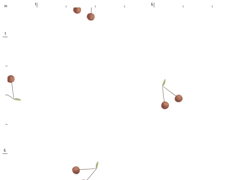 Abstract blue and green leaves Bud branches and green vines Brown animals and clouds Cornflowers on green
